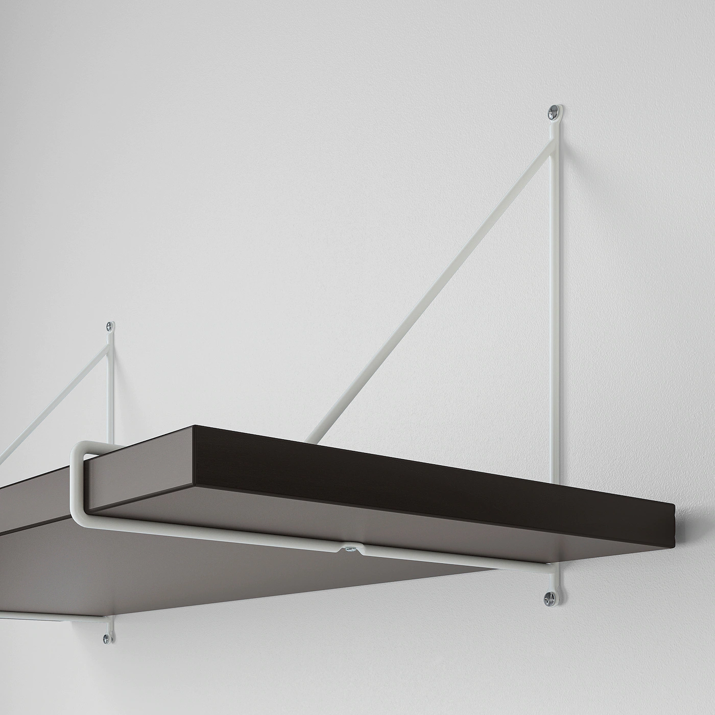 The brackets are designed to fit well together when connecting several in a larger combination. You can choose to mount the brackets above or below the shelf and thereby creating two different expressions. You only need one screw to fix two brackets together.Material