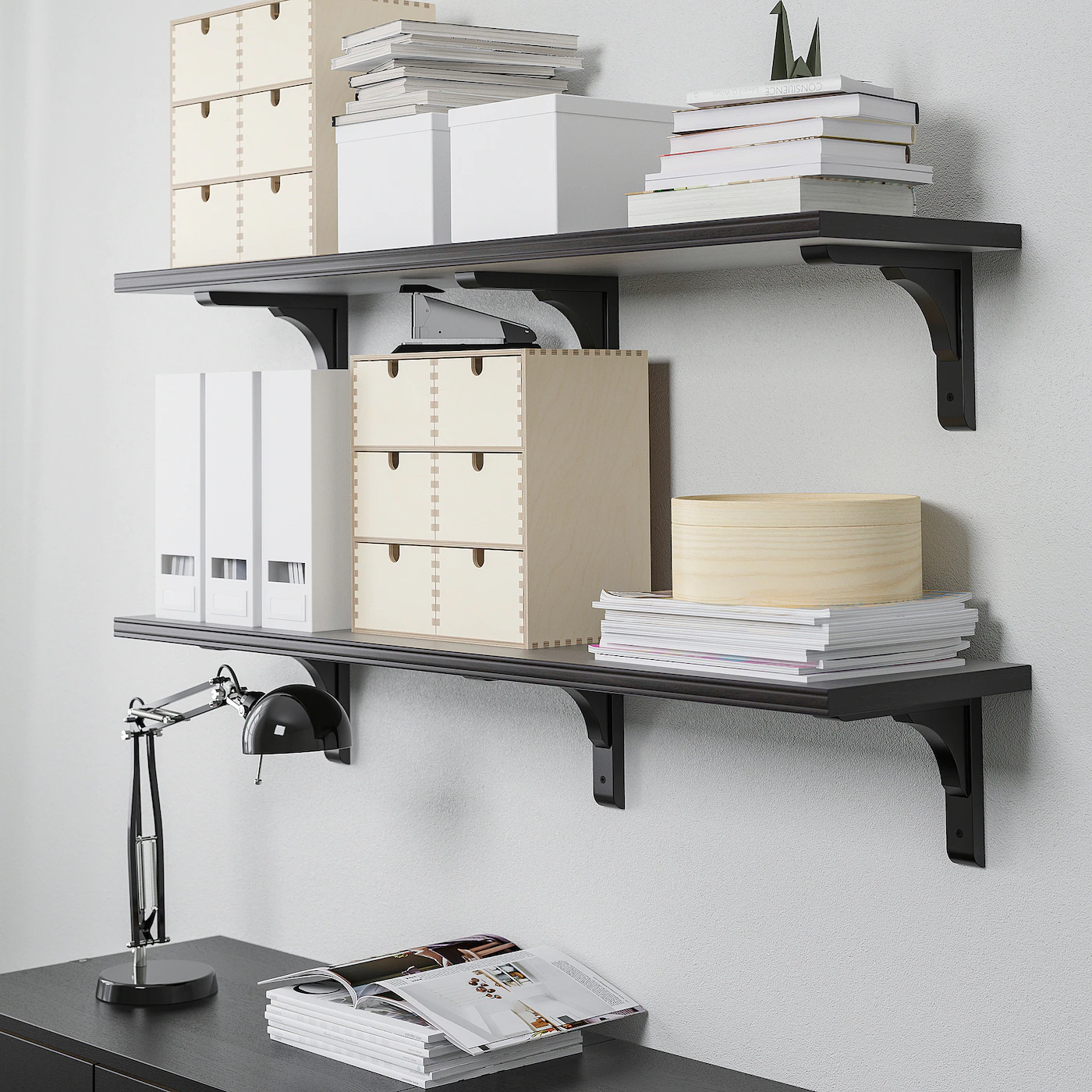 IKEA BERGSHULT / RAMSHULT Wall Shelf Combination Brownblack 47 1/4×11 3/4 “