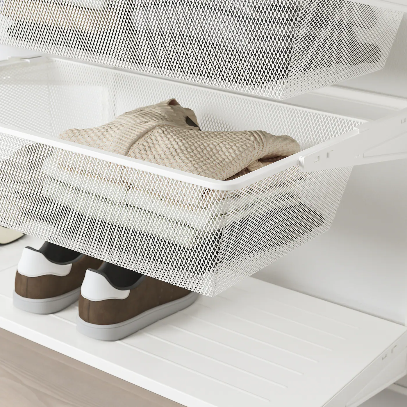 You can always adapt or complete this open storage solution as needed. Maybe the combination we’ve suggested is perfect for you, or you can easily create your own. BOAXEL can be used in humid areas of the home, like in the laundry room. You easily click the interior to BOAXEL bracket, no tools are needed.Material