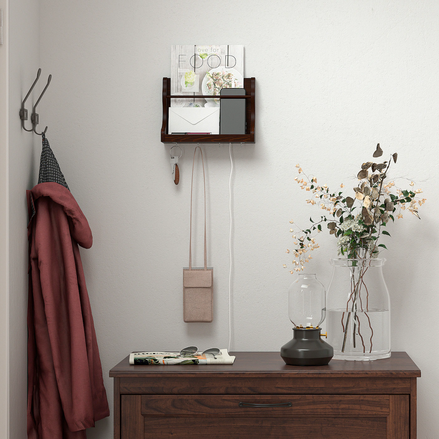 If you want to charge your mobile phone, you can easily pull the cable through one of the pre-drilled holes to connect it to a power outlet.