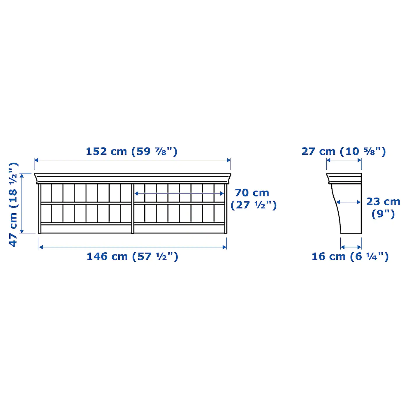 You can use the wall/bridging shelf separately or create a holistic solution with side storage and a TV bench.