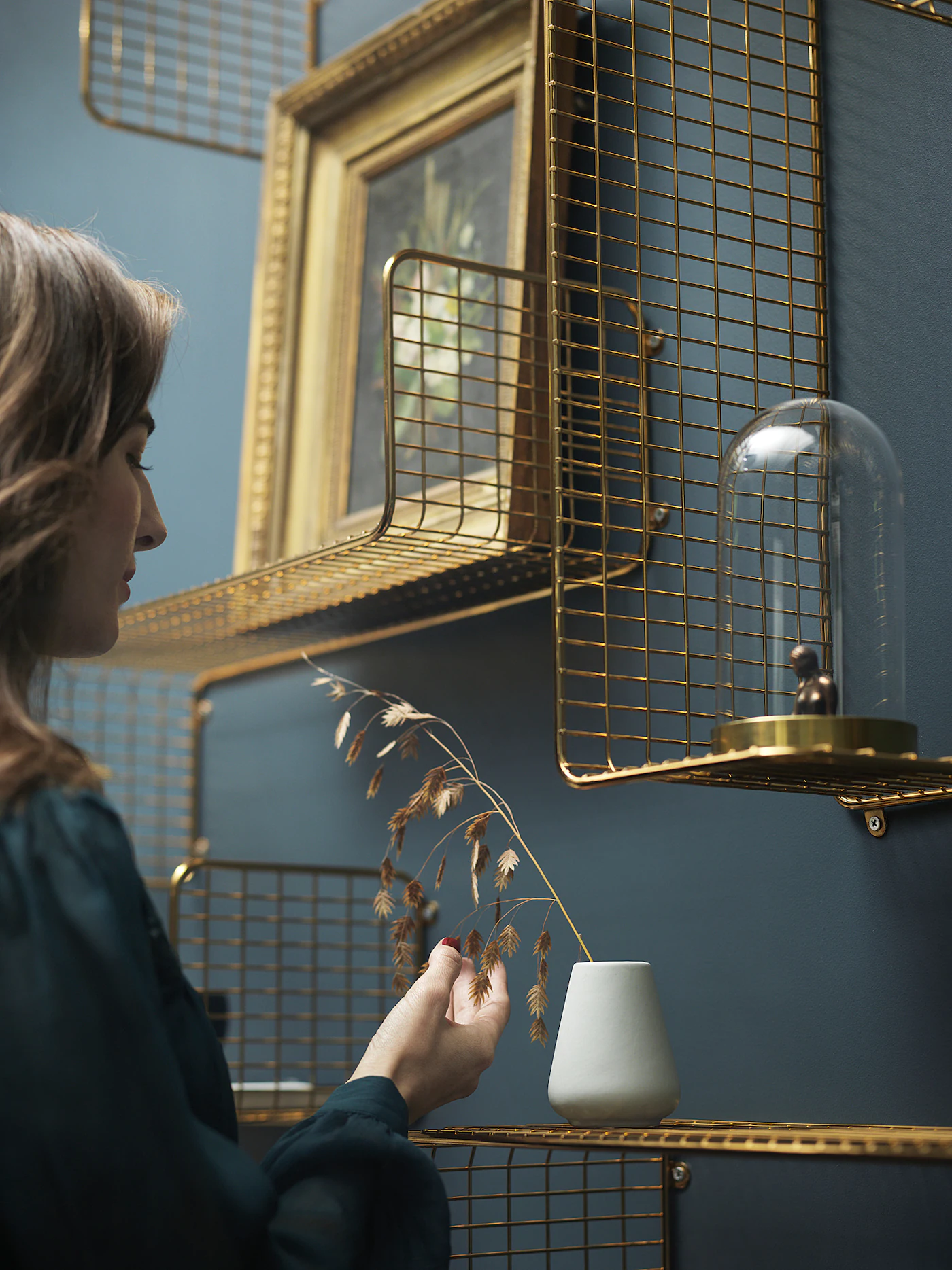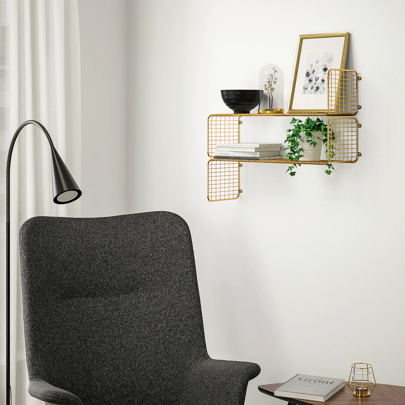 The mesh net is even enough to allow you to put mugs, books and decorations on it. Mount the wall shelf with different sides facing up depending on what you want to store on it. For example, the edge on one side prevents books from sliding off.Material