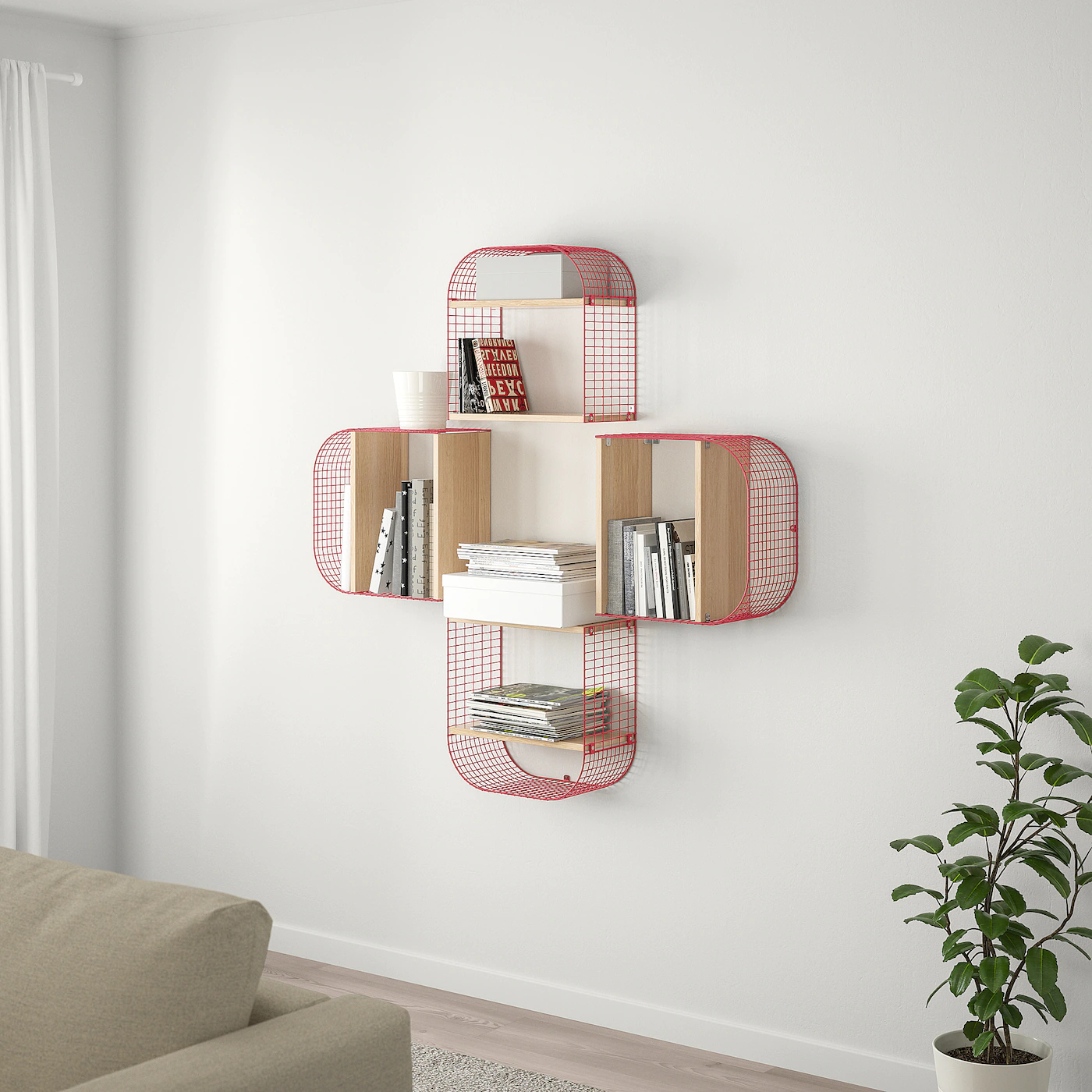 The mesh net is even enough to allow you to put mugs, books and decorations on it. May be mounted in different positions to best suit your storage needs and your home. You can run cords through the mesh net so that you can charge things like mobile phones on the shelf in an easy way.Material